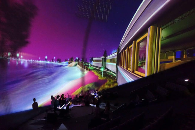ドームに映し出される映像については、KAGAYAスタジオの「銀河鉄道の夜」の映像に加え、科学館のスタッフがこの日のためだけに制作した映像が多数映し出され、私も演奏しながら見上げて楽しませていただきました。