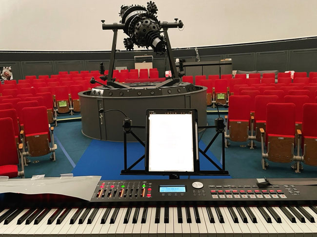 プラネタリウム番組「銀河鉄道の夜」の音楽をたくさん演奏しました。久しぶりの1人でのステージでしたが、兄(KAGAYA)にドーム映像を出してもらい、途中で星空解説までしてもらって、満員のお客様に大変楽しんでいただきました。